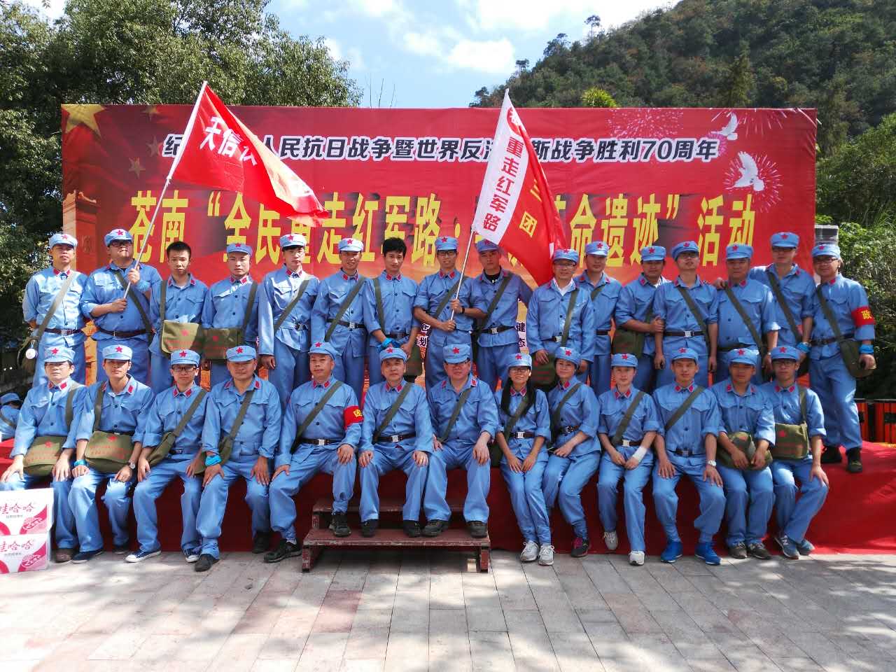 身著紅軍服,頭戴紅軍帽,重走紅軍路。10月18日,天信儀表集團(tuán)30余名員工作為第3紅軍方隊,在團(tuán)長鄭成平、政委范叔曙的帶領(lǐng)下,參加了溫州市戶外運(yùn)動協(xié)會蒼南分會組織的全民重走紅軍路尋找紅軍遺跡活動。本次活動,從蒼南烈士陵園集合出發(fā),最后到達(dá)云巖鄉(xiāng)革命老根據(jù)地紀(jì)念亭,全程共18公里。