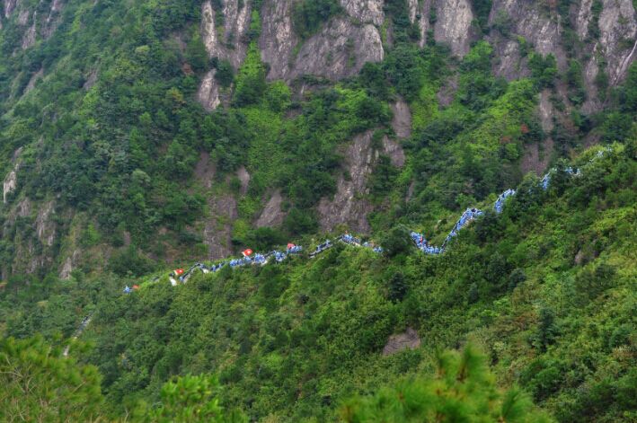 在整個行軍過程中,最有挑戰(zhàn)的路段莫過于三十六彎了,有些地方臺階的陡峭度甚至達(dá)到了六七十度,每跨上去一級,大腿就會又酸又疼,在互相鼓勵下,天信隊員們不放棄不拋棄,一步步堅持到底,終于站在了最高峰俯視群山,當(dāng)美景盡收眼底的那一刻,大家紛紛拿出手機(jī)記錄下這個難忘的旅程,并在微信、微博搶發(fā),一瞬間朋友圈被紅色正能量刷得滿滿的!