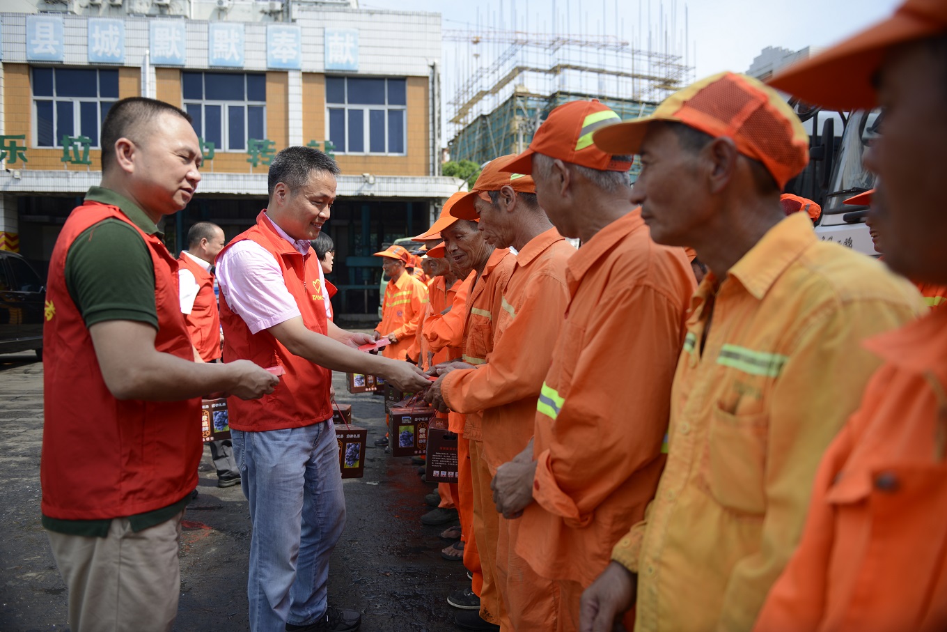 對環衛工人的關愛,體現了一個城市的文明程度,這不是表現在口頭上,而是體現在具體的行動中。為了號召廣大市民講文明、樹新風,共同參與城市環境衛生建設,同時緩解、分擔環衛工人的工作壓力,天信儀表集團有限公司黨工團婦于今年夏季再一次發起;我為環衛工人送清涼;的微公益活動。