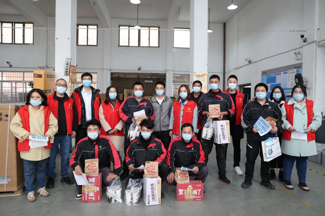 慰問組先后來到順豐快遞網(wǎng)點、公司保安室、高速路口,了解一線防疫人員的工作狀況,向一直堅守工作崗位的他們表示衷心感謝,并送上口罩、蛋糕、漢堡、雞腿、飲料等慰問品。
