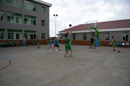參觀后,一場軍民籃球賽隨即激烈上演。雙方球員本著“友誼第一,比賽第二”的原則,在賽場上奮力拼搏、積極進攻、全力防守、默契配合,共同為在場觀眾奉獻了一場精彩的比賽,最后比分為87:83,天信隊以微弱的優(yōu)勢勝出。