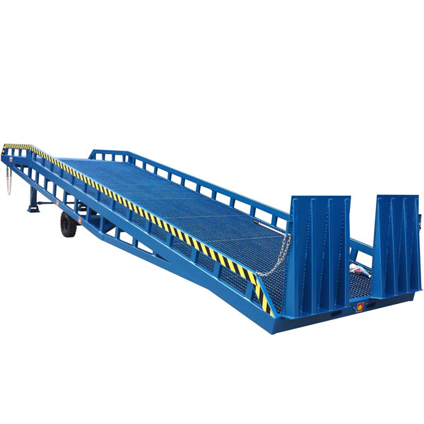 DCQY移動式液壓登車橋使用于裝卸作業(yè)不固定的場合,叉車可以直接通過它從地面駛?cè)胴涇嚿线M(jìn)行裝卸作業(yè),該產(chǎn)品具有高強(qiáng)度的焊接鋼構(gòu),表面鋪設(shè)防滑鐵網(wǎng),附設(shè)剎車墊防止貨物裝卸時登車橋移動,采用手動液壓泵升降,不需外接電源即可輕松實現(xiàn)登車橋高度的調(diào)節(jié),可調(diào)節(jié)的掛鏈鉤可方便地與各種貨車緊密配合,使裝卸作業(yè)更安全、更快捷、更高效。